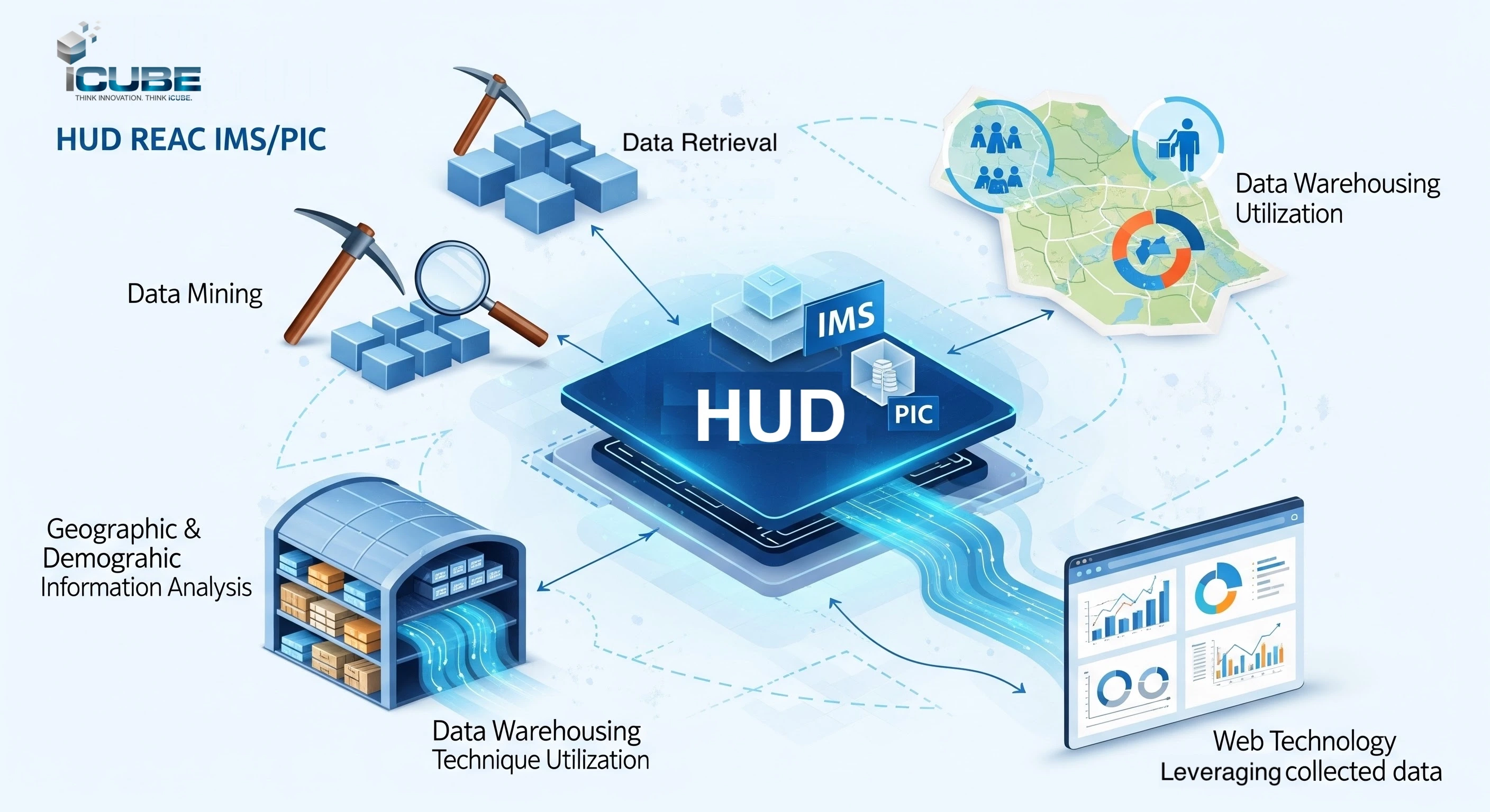 Fairfax-based iCUBE Inc. (iCUBE) is to provide support for the Inventory Management System (IMS)/PIH Information Center (PIC) Technical Assistance and Business Support Requirements for the Department of Housing and Urban Development (HUD) Real Estate Assessment Center (REAC). iCUBE will work with the prime contractor Cloud Nine Technologies on this 3-year contract. The contract involves providing technical assistance and business support in the form of data mining, geographic and demographic information analysis, data warehousing technique utilization, and web technology to leverage the data collected in the IMS/PIC system to support business users and decision making.